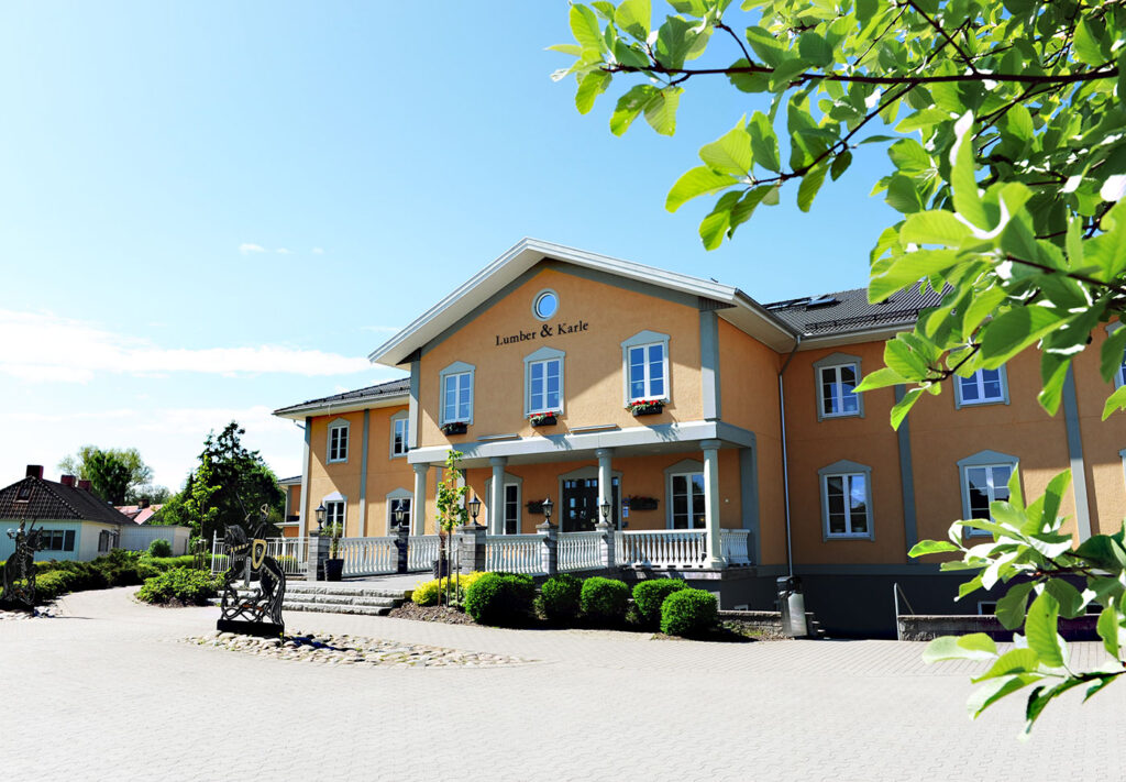 I den mjuka västgötska mylla, där jordbruksbygd och köpingar vävs samman, finner Du Lumber & Karle Hotell. Med en fläkt av antikens klassicism och en förebild i den romerska villan, har vi skapat en hotellanläggning som kan möta drömmen om vila eller behov av aktivitet.