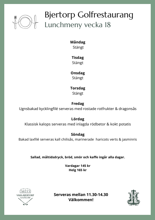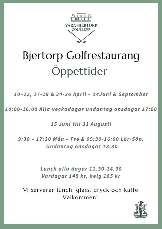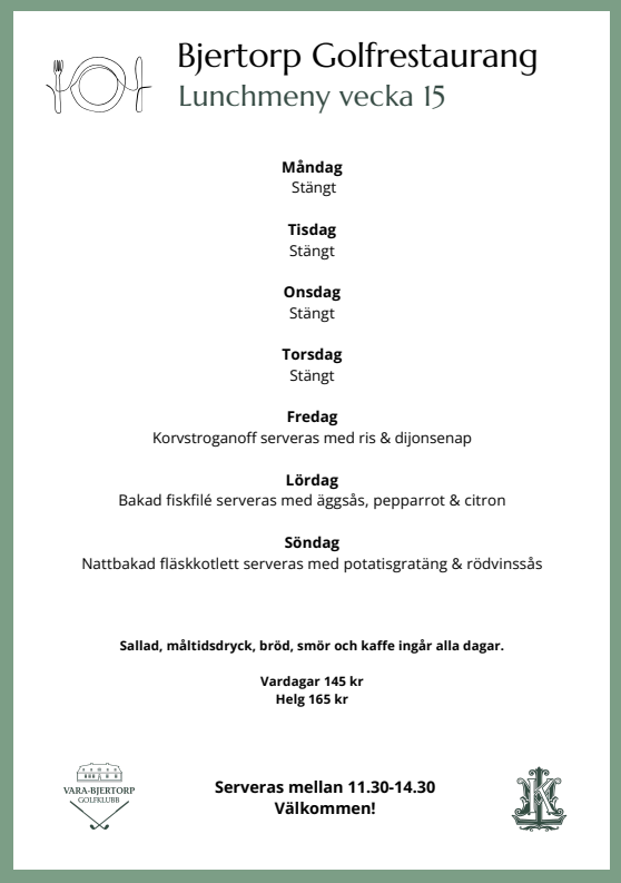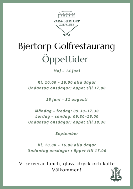 Boka för större sällskap? Du når oss på golfrestaurang@bjertorpslott.se för bokning eller specifika önskemål vid golftävlingar även utöver ordinarie öppettider är.